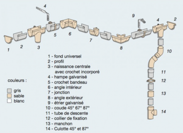 1 naissance, 1 jonction, 1 fond universel suffisent à mettre en place la gouttière.